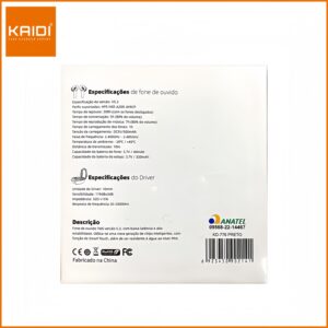 Fone de Ouvido Sem fio Bluetooth TWS Kaidi KD-776 tem versão TWS 5.4, com baixa latência e alta estabilidade. Utiliza-se uma nova geração de chips inteligentes, com função Smart Touch, além de ser resistente à água no nível IPX4.